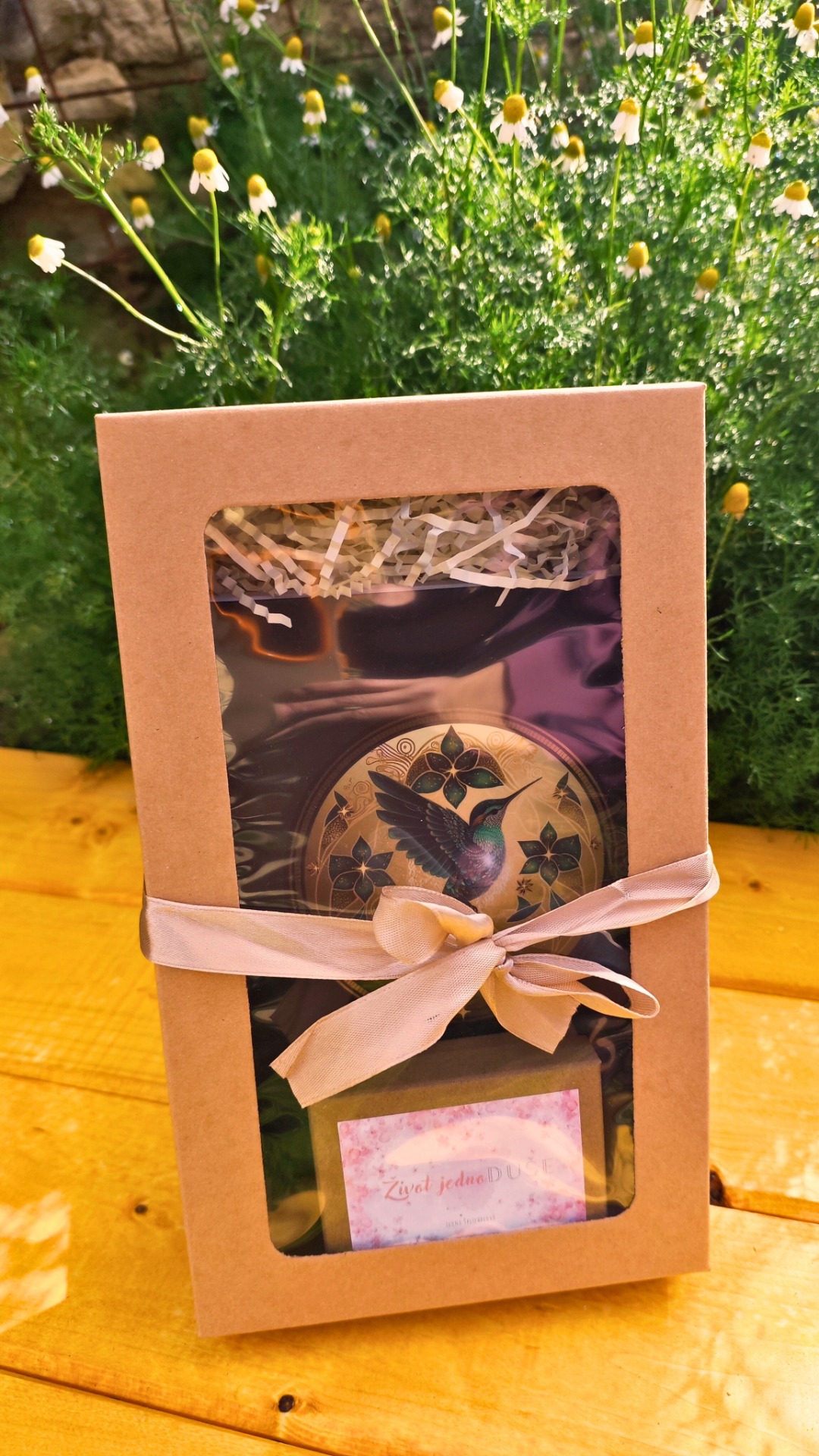 Součástí dárkového balíčku je autorský diář KOLIBŘÍK ve velikosti A5 a kartičky Život jednoDUŠE.