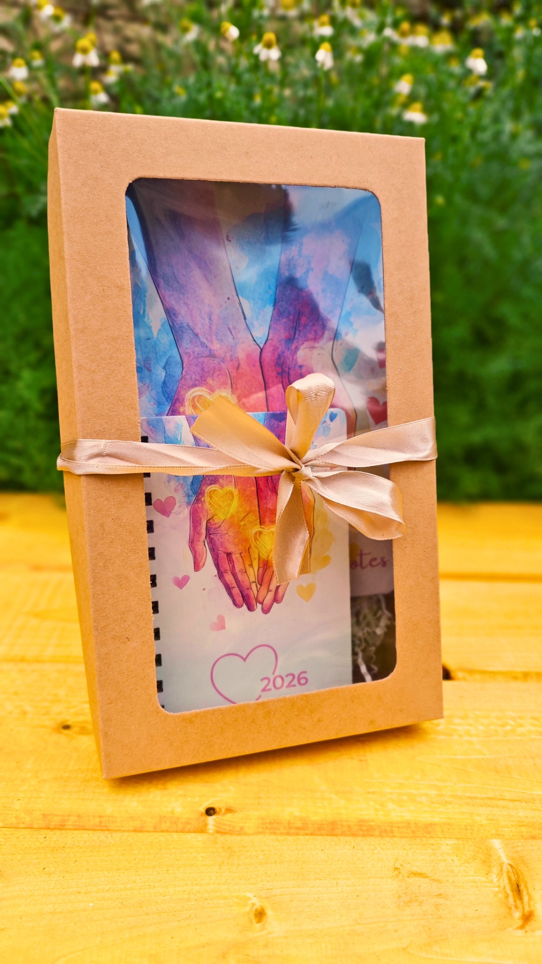 Součástí dárkového balíčku je autorský diář SRDCE NA DLANI ve velikosti A6 a zápisník se stejným motivem ve velikosti A5.