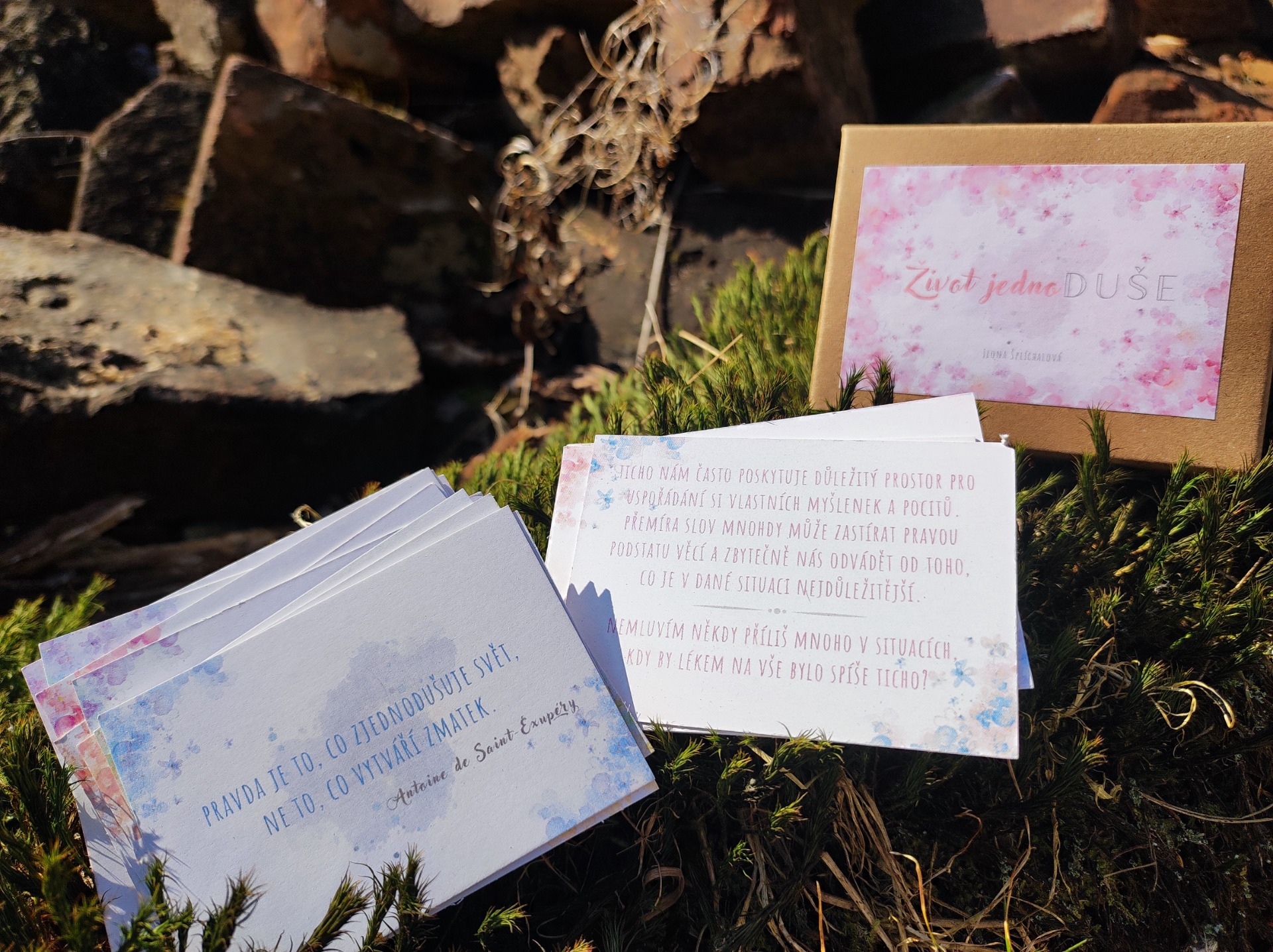 Součástí dárkového balíčku je autorský zápisník SVÍTÁNÍ ve velikosti A5, Karty duše a kartičky Život jednoDUŠE.