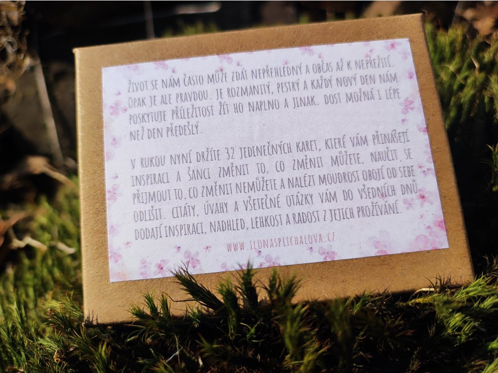 Už stačí jen krůček a v rukou můžete držet 32 jedinečných karet, které vám přinesou inspiraci a šanci změnit to, co změnit můžete, naučit se přijmout to, co změnit nemůžete a nalézt moudrost obojí od sebe odlišit.
