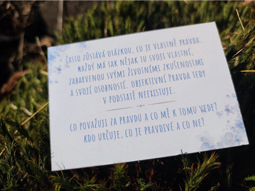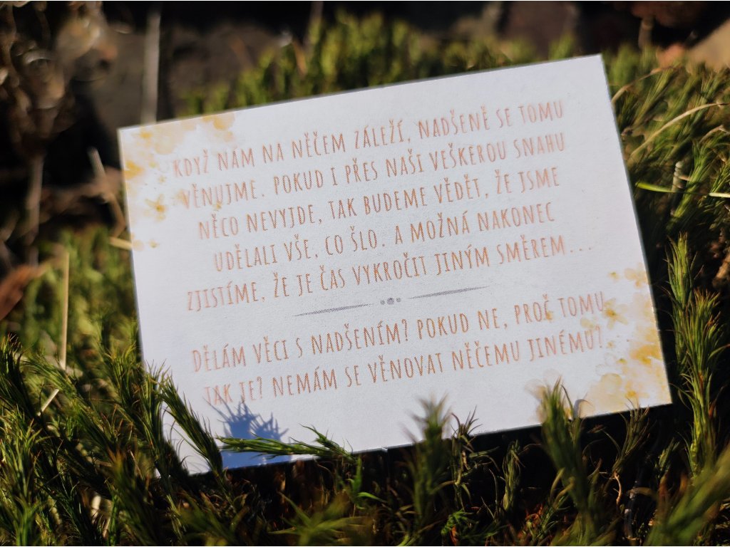 Na kartičkách najdete citáty, úvahy i všetečné otázky, které vnesou do vašich dnů lehkost, nadhled a radost. Každá karta je malým impulzem, který vám připomene, že i všední okamžiky mohou být plné krásy a nových možností.